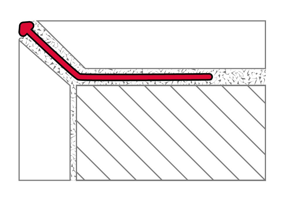 This profile can also be used in combination with stone carpets to create a clear boundary and a clean finish. The angled design with a 135° angle allows for precise adaptation to various surfaces.