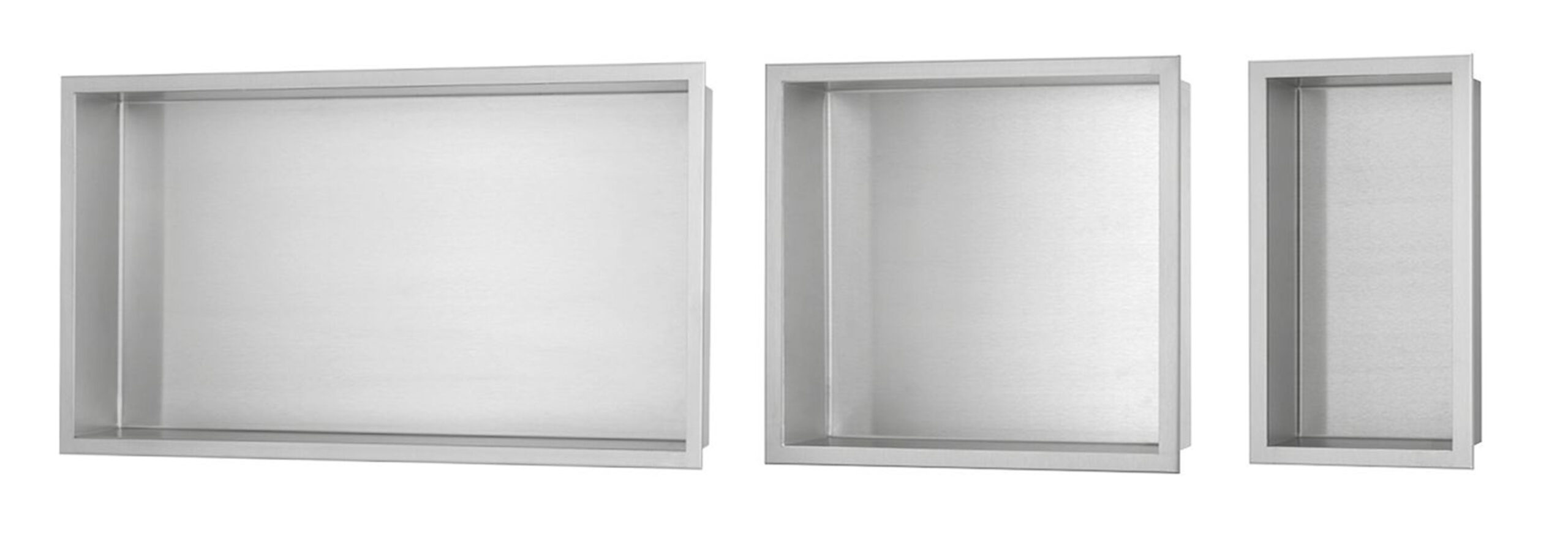 The niche made of stainless steel integrates flush into walls and offers hygienic storage space in wet areas.