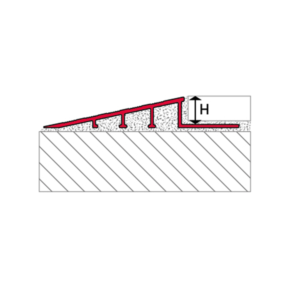 The ramp profile made of aluminum is specifically designed to bridge height differences between different floor coverings. It provides reliable edge protection and a neutral, durable appearance suitable for both private and commercial applications.