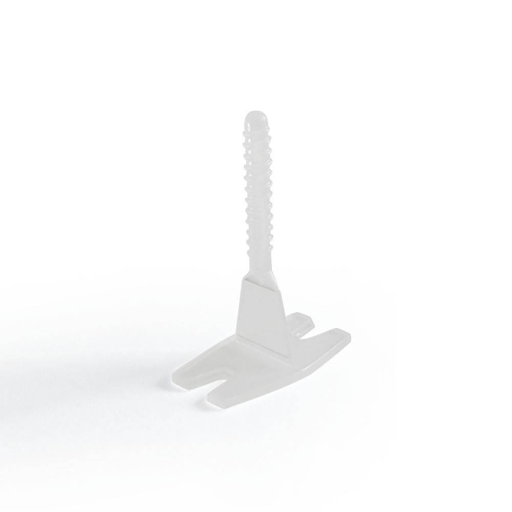 The application of the system is simple: the threaded tabs are slid under the tiles to achieve the desired joint width. Then, the knobs are placed on the tabs and, with a few turns of the screws, the tiles are brought to the same level. After the tile adhesive has dried, the knobs can be unscrewed and the tabs broken off.